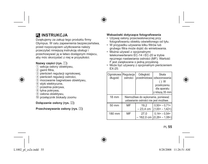 INSTRUKCJA OBSŁUGI ZUIKO DIGITAL ED 18-180MM F3.5-6.3 OLYMPUS