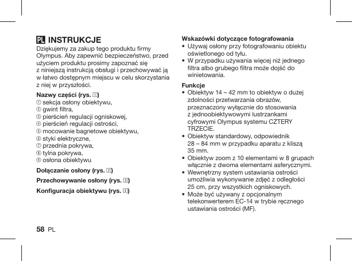 INSTRUKCJA OBSŁUGI ZUIKO DIGITAL ED 14 OLYMPUS