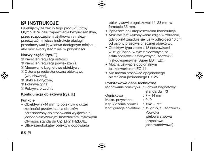 Znajdź bezpłatnie instrukcję urządzenia ZUIKO DIGITAL ED 7 OLYMPUS w formacie PDF.