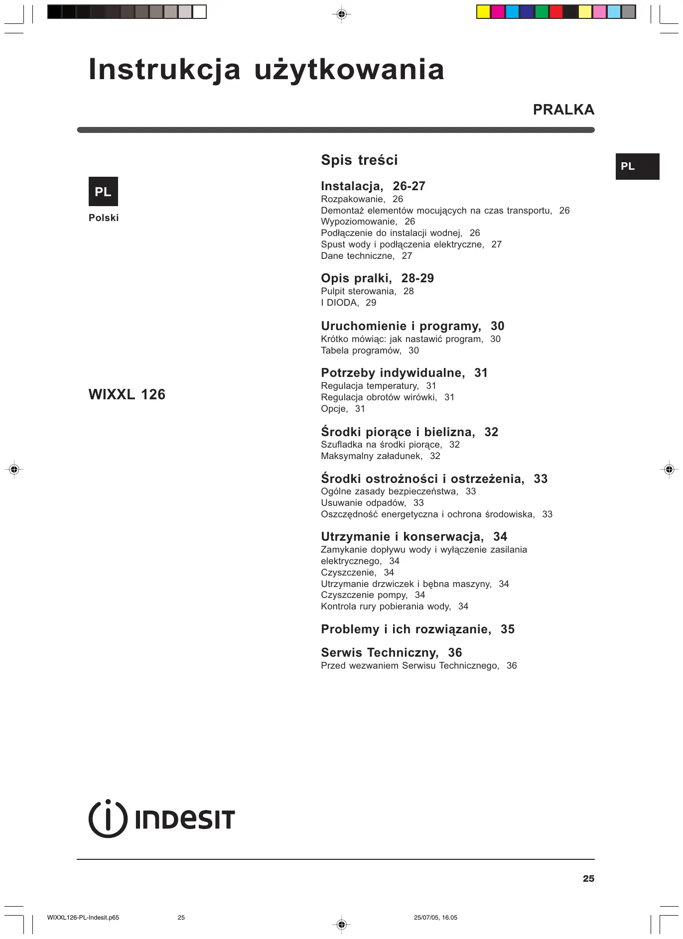 WIXXL126 - Pralka INDESIT - Bezpłatna instrukcja obsługi