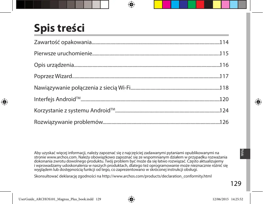 - UserGuide_ARCHOS101_Magnus_Plus_book.indd 128 12/06/2015 14:25:52 Spis treści Zawartość opakowania p. 114