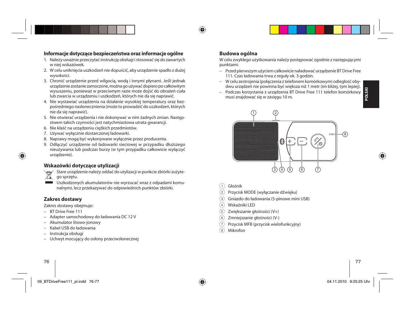 INSTRUKCJA OBSŁUGI BT DRIVE FREE 111 BLAUPUNKT