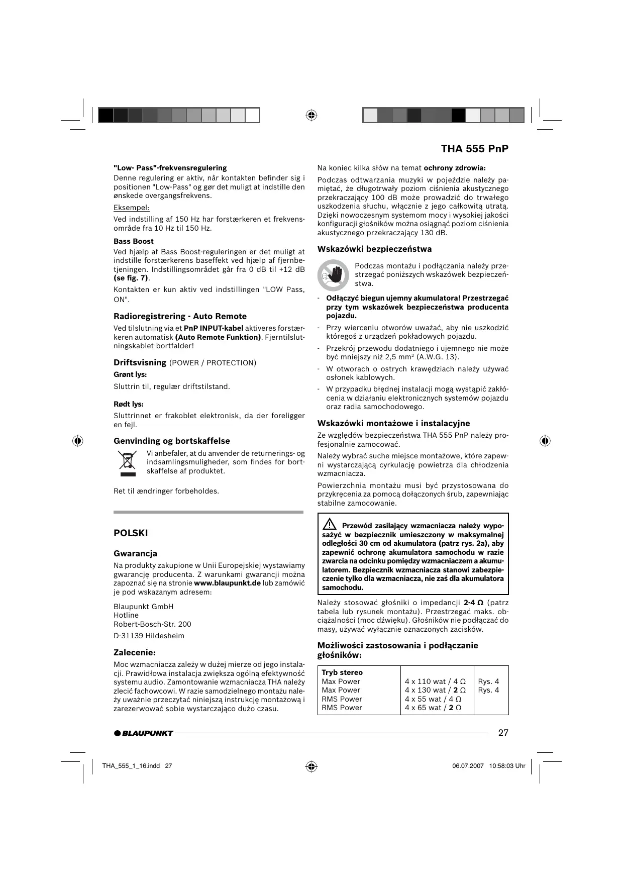 THA 555 PNP - Wzmacniacz samochodowy BLAUPUNKT - Bezpłatna instrukcja obsługi