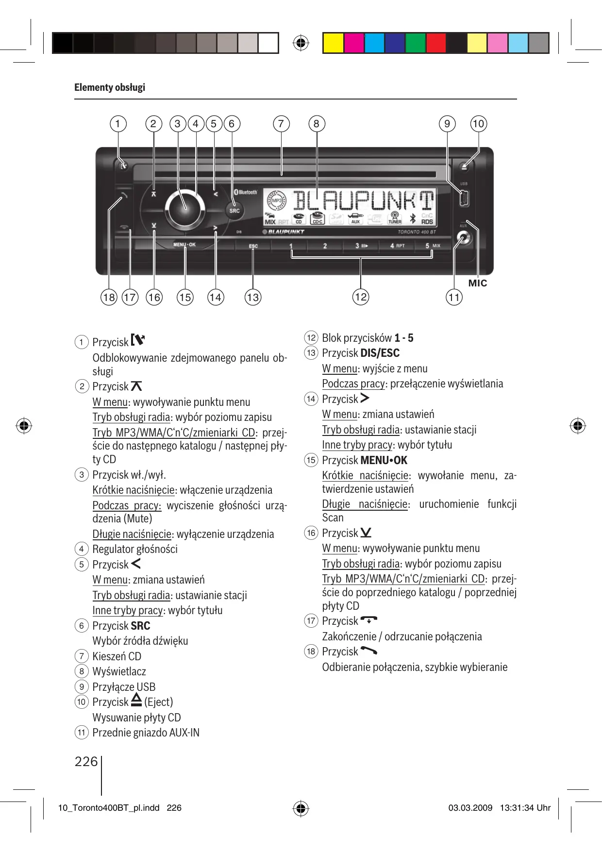 INSTRUKCJA OBSŁUGI TORONTO BT400 BLAUPUNKT