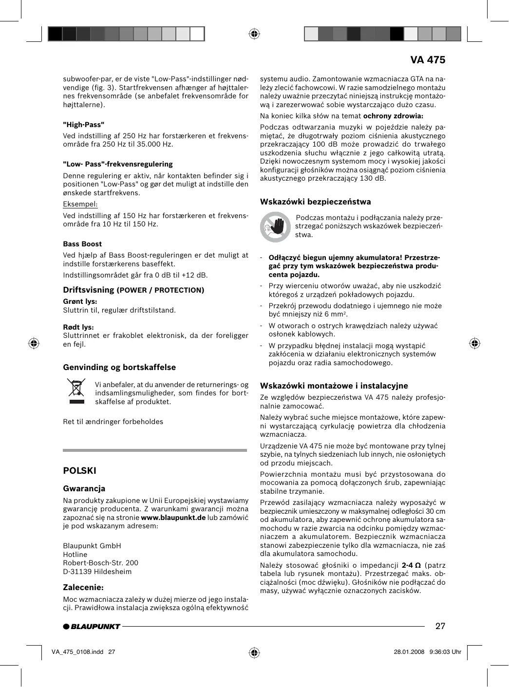Znajdź bezpłatnie instrukcję urządzenia VELOCITY VA 475 BLAUPUNKT w formacie PDF.