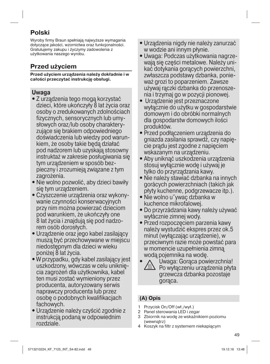 INSTRUKCJA OBSŁUGI KF7125BK PURAROMA 7 BRAUN