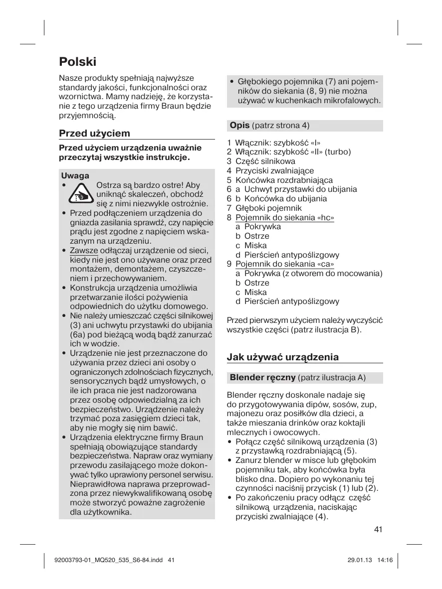 MQ525 - Blender ręczny BRAUN - Bezpłatna instrukcja obsługi