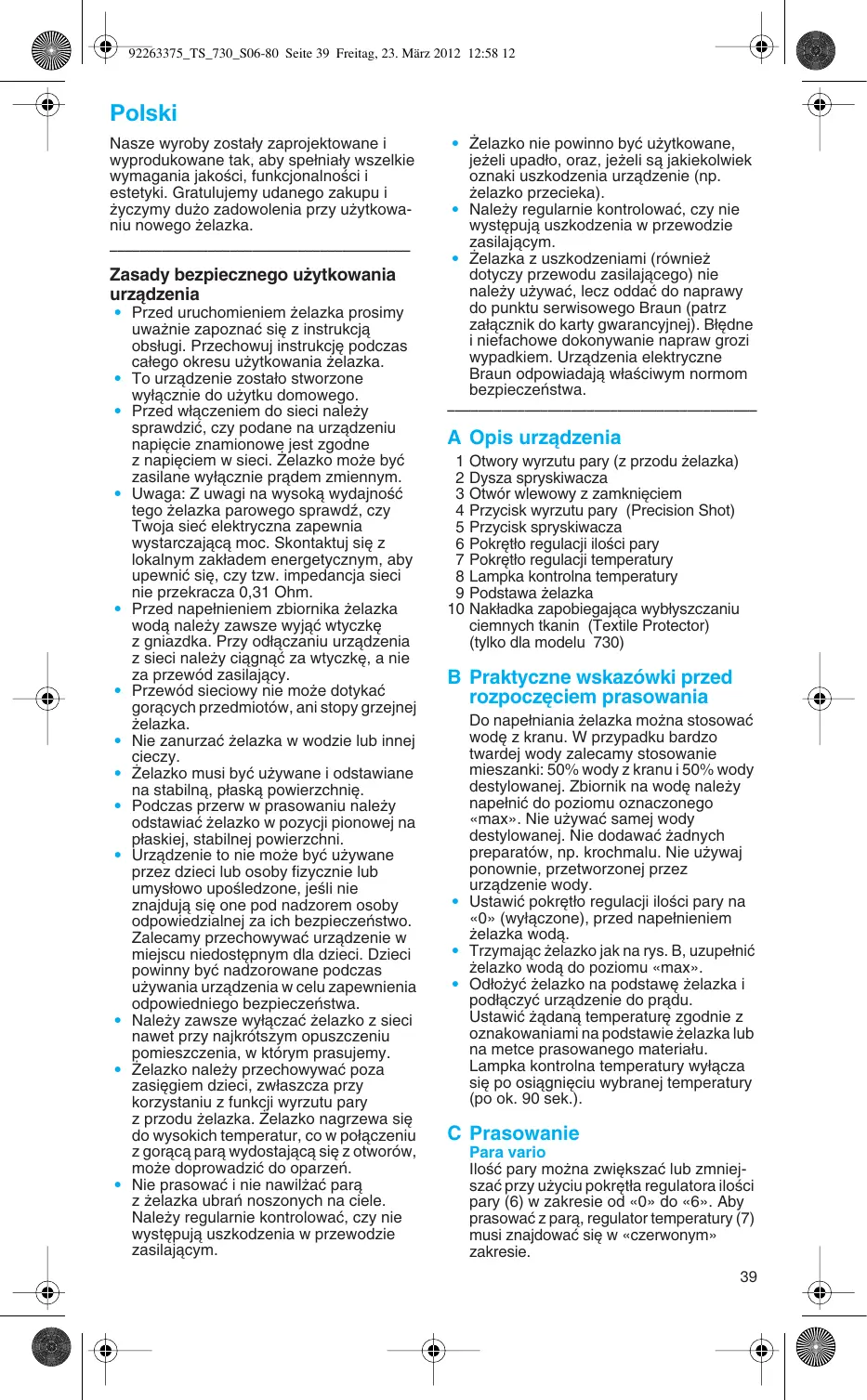 TEXSTYLE 710 - żelazko BRAUN - Bezpłatna instrukcja obsługi