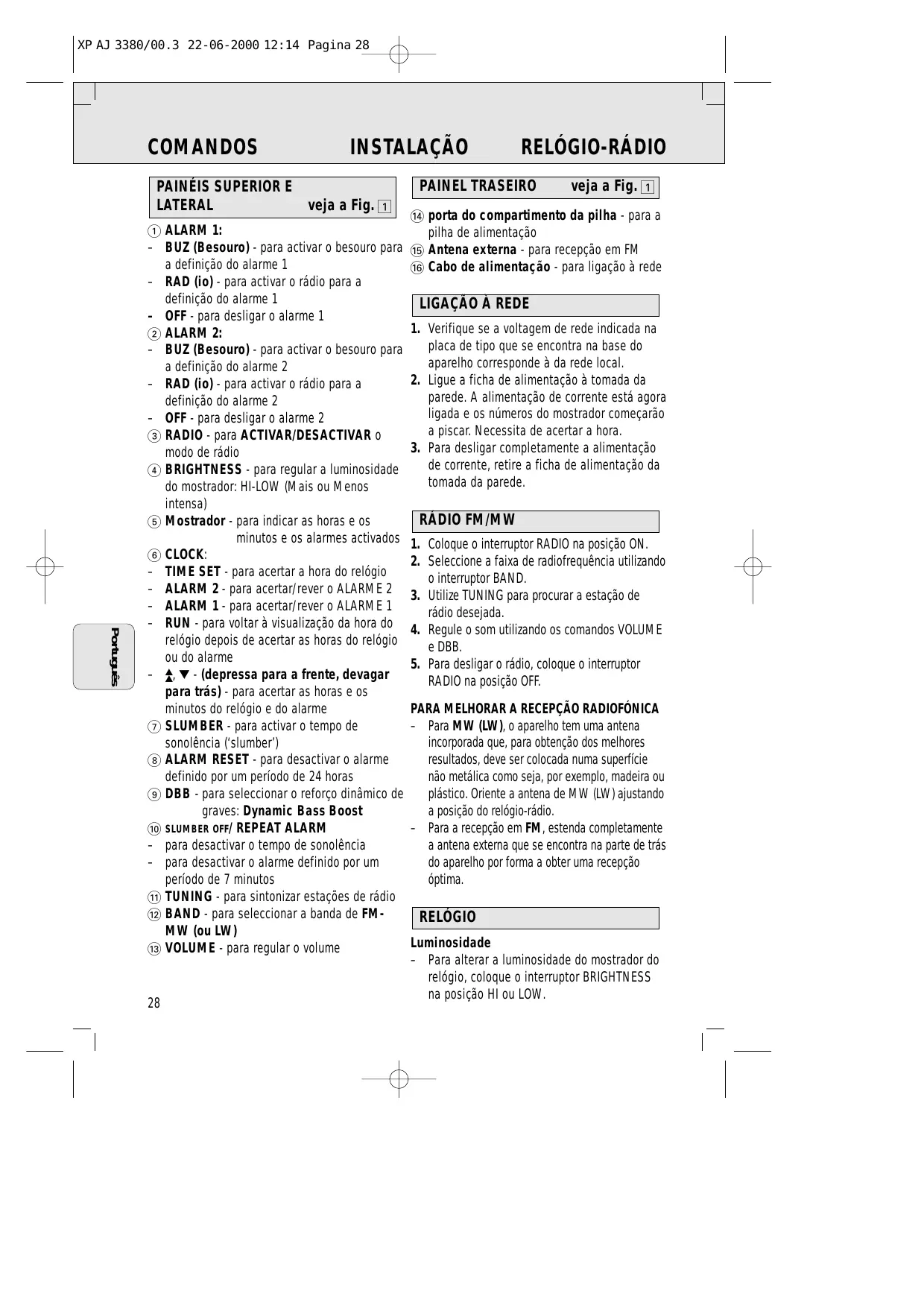 AJ3380 - Rádio relógio PHILIPS - Manual de utilização gratuito