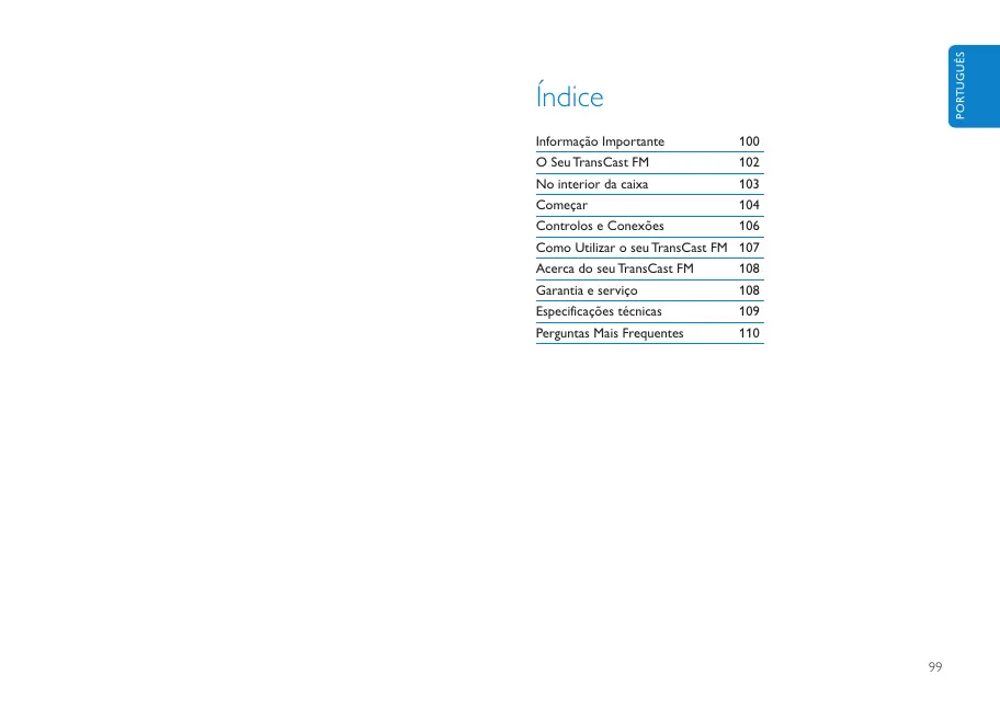 Importanta: Leia cuidadosamente o capuito "Informação importante" antes de utilizeu o seu TransCast FM da Philips.
