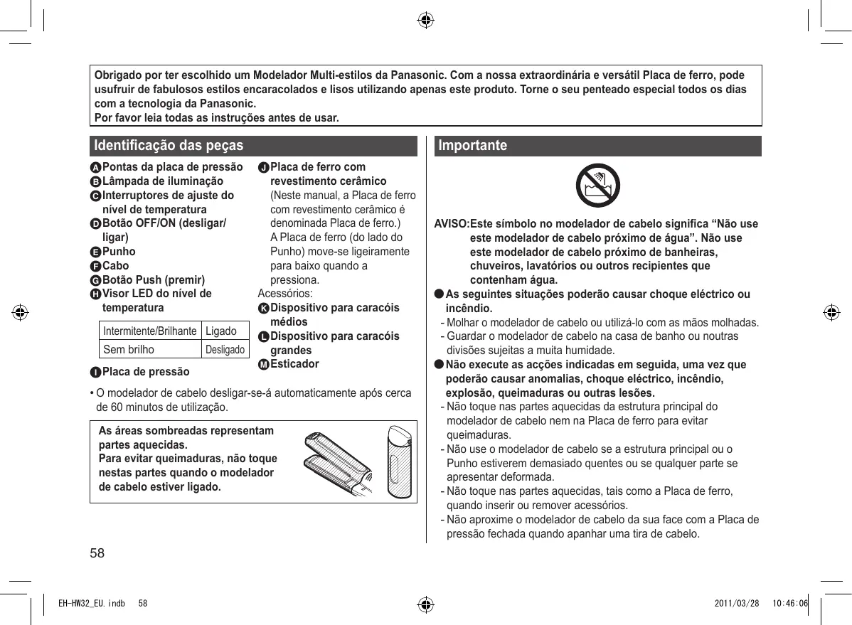 Obrigado por ter escolhido um Modelador Multi-estilos da Panasonic. Com a)nossaextraordinaria eversatile Placa de ferro,poedusufrir de fabulosos estilos encaracolados e lisosutilizing apenas este produits. Torne o seu penteado especial todos os diascom a Tecnologia da Panasonic.