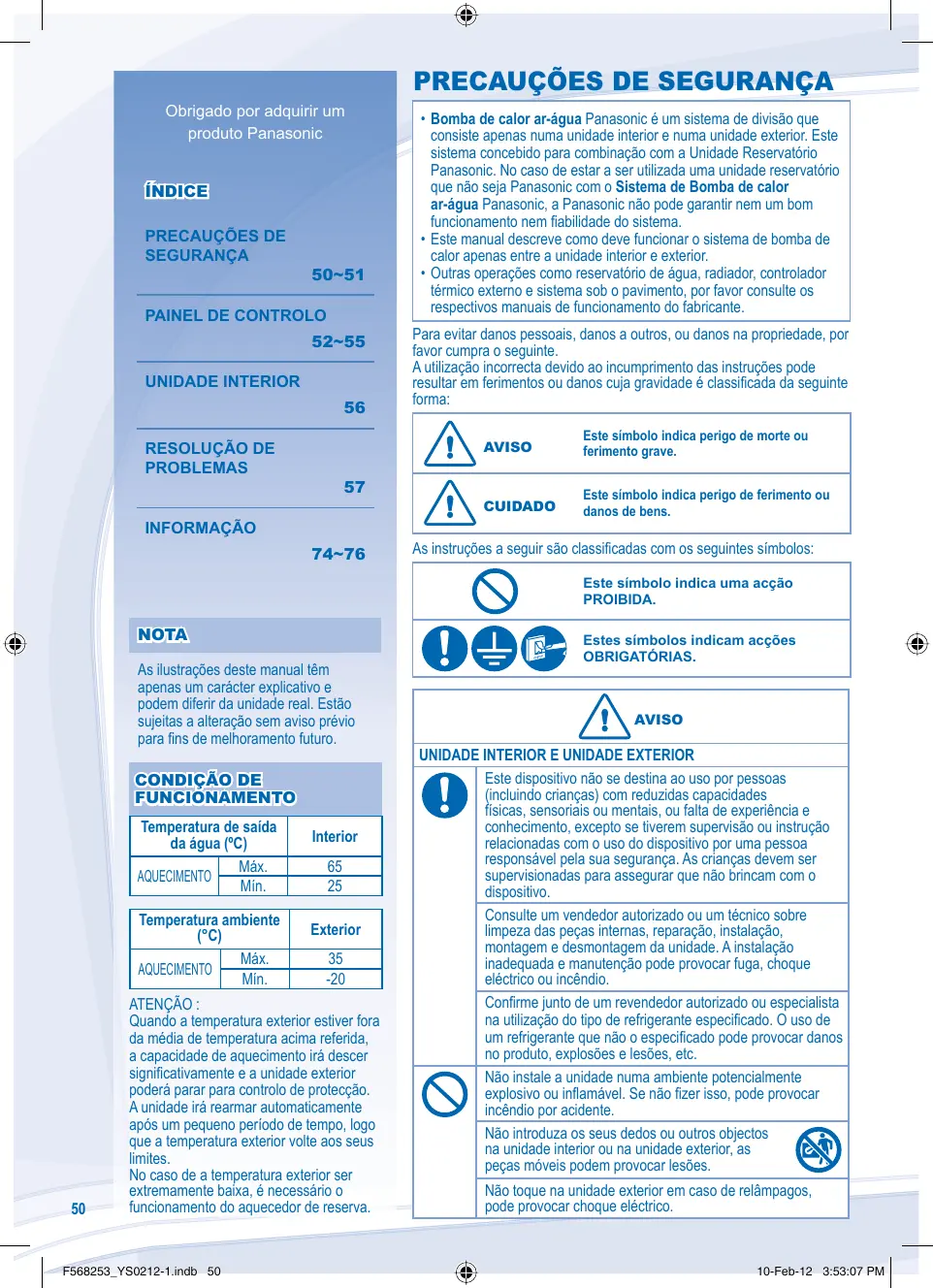 10-Feb-12 3:53:07 PM PRECAUÇÕES DE SEGURANÇA Obrigado por adquirir um produto Panasonic ÍNDICE PRECAUÇÕES DE SEGURANÇA