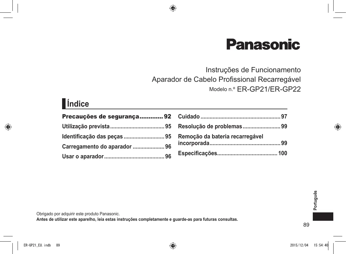 Encontre gratuitamente o manual do aparelho ER-GP22 PANASONIC em formato PDF.