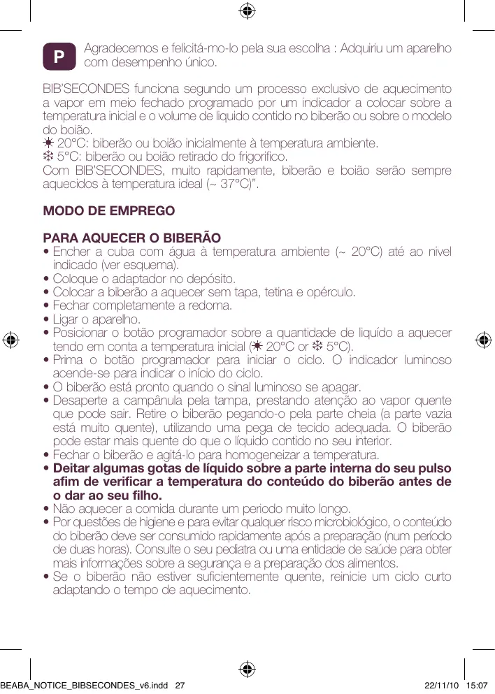 MANUAL DE UTILIZADOR BIB SECONDES CONTROL BEABA