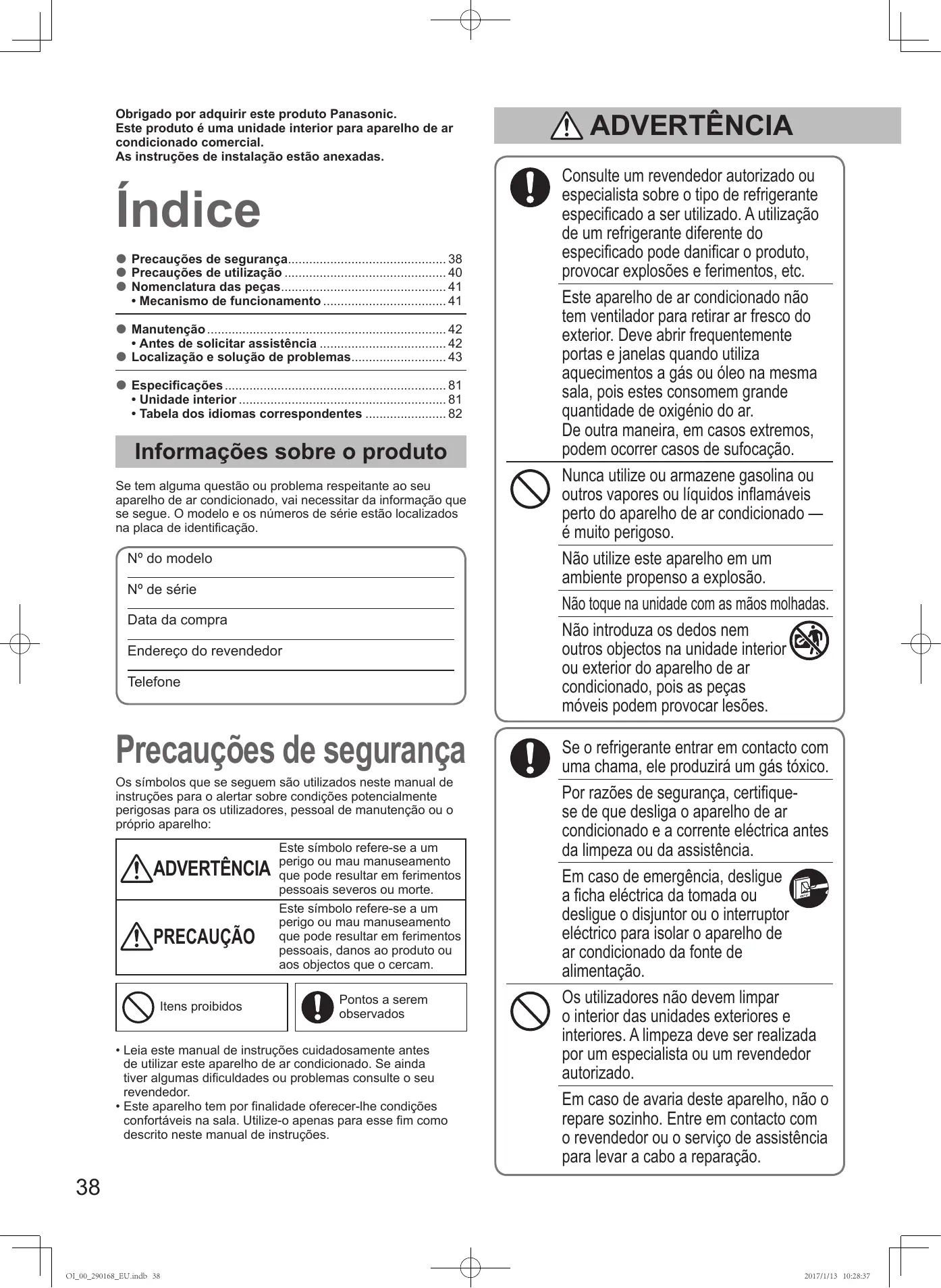 S36MU2E5A - Ar condicionado PANASONIC - Manual de utilização gratuito