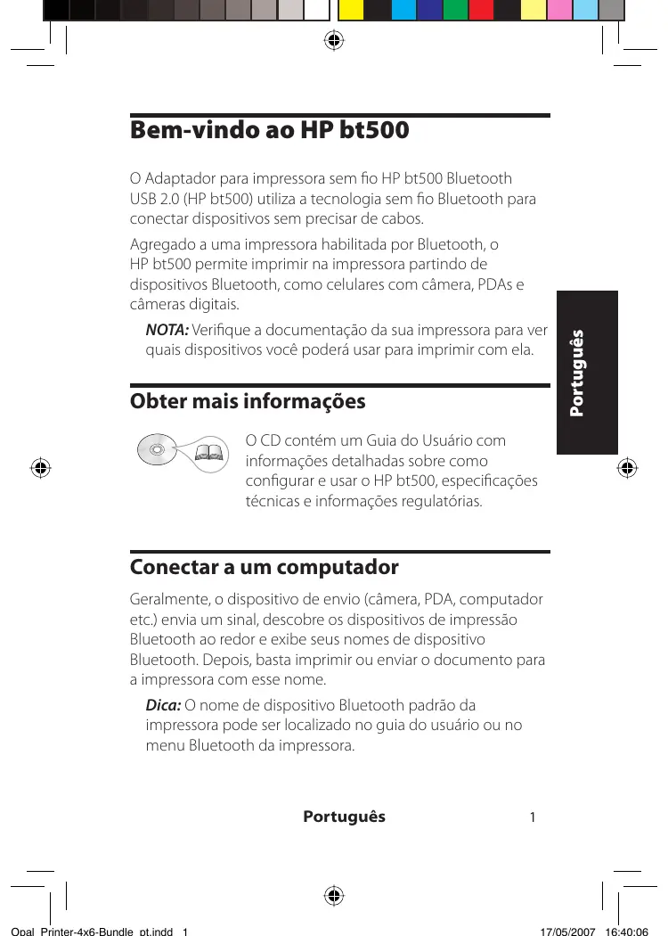 BT500 - Acessório Bluetooth HP - Manual de utilização gratuito