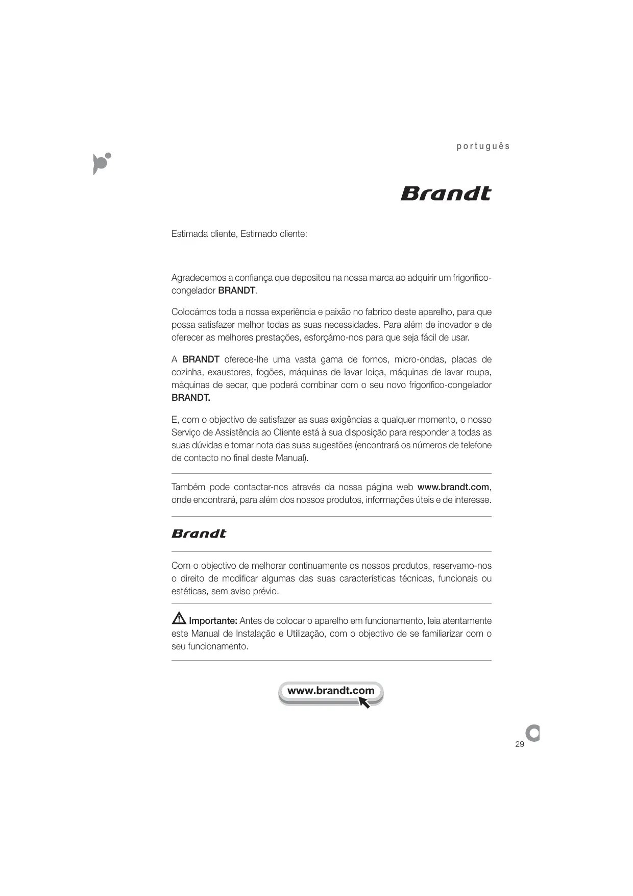 Encontre gratuitamente o manual do aparelho BFL3702BW BRANDT em formato PDF.