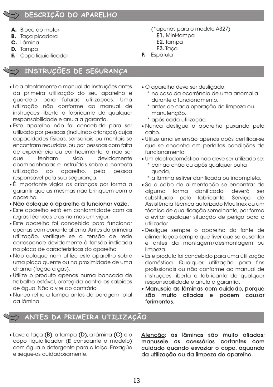 MANUAL DE UTILIZADOR A327R1 MOULINEX