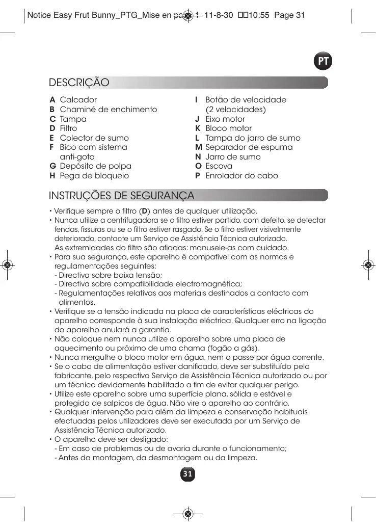 Notice Easy Frut Bunny_PTG_Mise en page 1 11-8-30 10:55 Page 35 LIMPEZA
