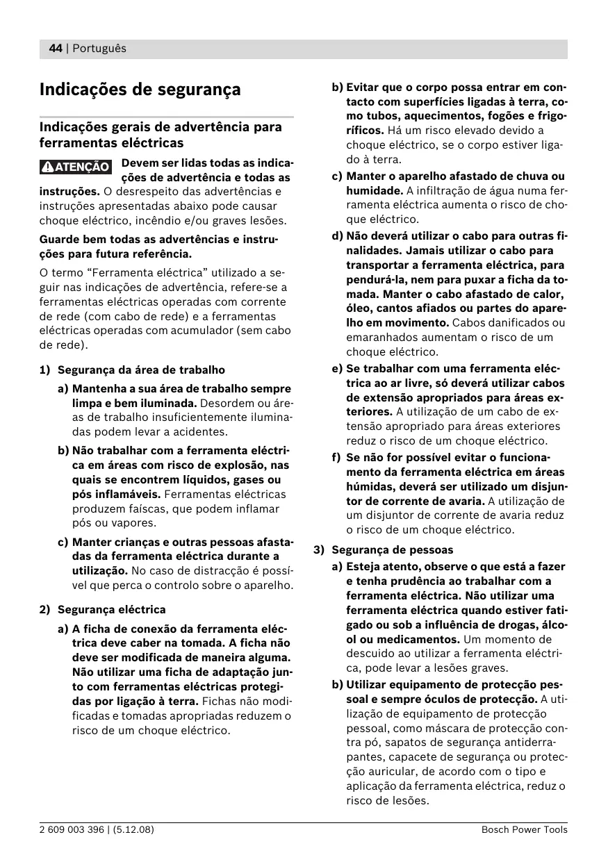 28.12.2009), 2006/42/CE (a partir de 29.12.2009). O nível de oscilações indicado nestas instruções de serviço foi medido de acordo com um processo de medição normalizado pela norma EN 60745 e pode ser utilizado para a comparação de aparelhos. Ele também é apropriado para uma avaliação provisória da carga de vibrações. O nível de vibrações indicado representa as aplicações principais da ferramenta eléctrica. Se a ferramenta eléctrica for utilizada para outras aplicações, com outras ferramentas de trabalho ou com manutenção insuficiente, é possível que o nível de vibrações seja diferente. Isto pode aumentar sensivelmente a carga de vibrações para o período completo de trabalho. Para uma estimação exacta da carga de vibrações, também deveriam ser considerados os períodos nos quais o aparelho está desligado ou funciona, mas não está sendo utilizado. Isto pode reduzir a carga de vibrações durante o completo período de trabalho. Além disso também deverão ser estipuladas medidas de segurança para proteger o operador contra o efeito de vibrações, como por exemplo: Manutenção de ferramentas eléctricas e de ferramentas de trabalho, manter as mãos quentes e organização dos processos de trabalho.