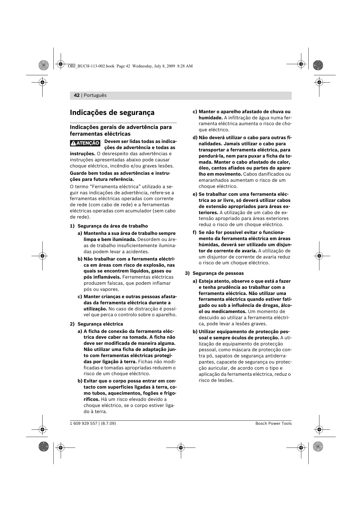 1 609 929 S57 | (8.7.09) OBJ_BUCH-113-002.book Page 42 Wednesday, July 8, 2009 8:28 AM 42 | Português Indicações de segurança