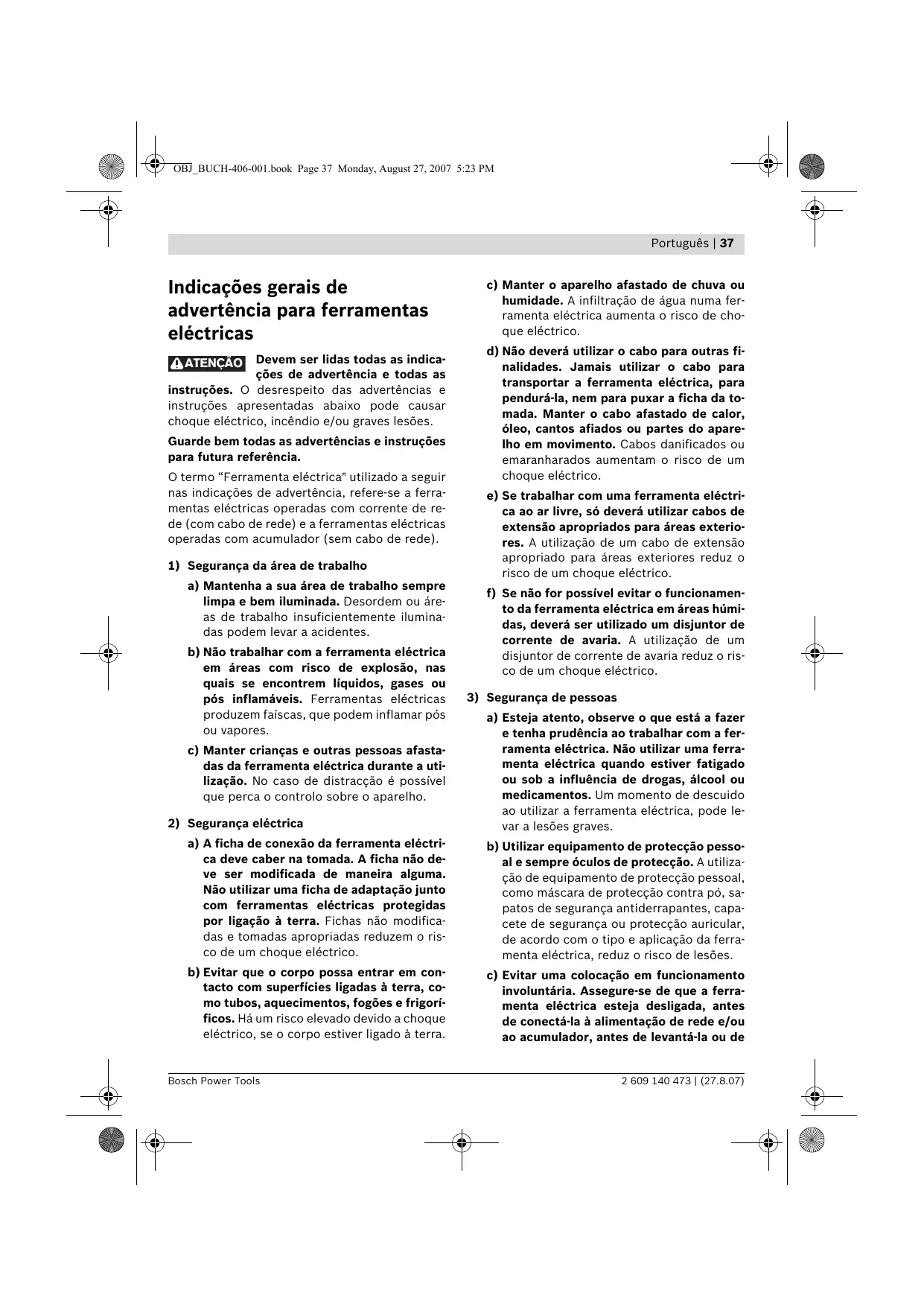 4) Utilização e manuseio cuidadoso de ferramentas electricas