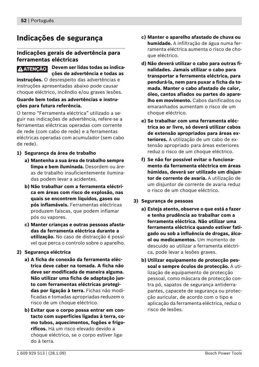 1 609 929 S13 | (28.1.09) 52 | Português Indicações de segurança