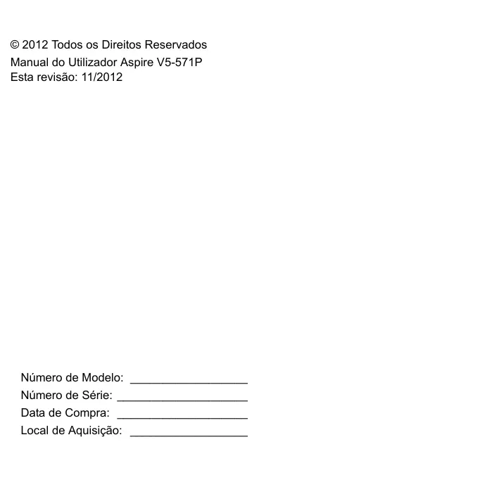© 2012 Todos os Direitos Reservados Manual do Utilizador Aspire V5-571P Esta revisão: 11/2012