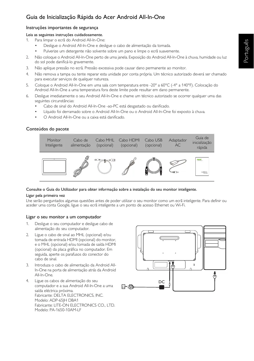 Baixe as instruções para o seu Monitor em formato PDF gratuitamente! Encontre o seu manual DA223HQL - ACER e retome o controlo do seu dispositivo eletrónico. Nesta página estão publicados todos os documentos necessários para a utilização do seu dispositivo. DA223HQL da marca ACER.