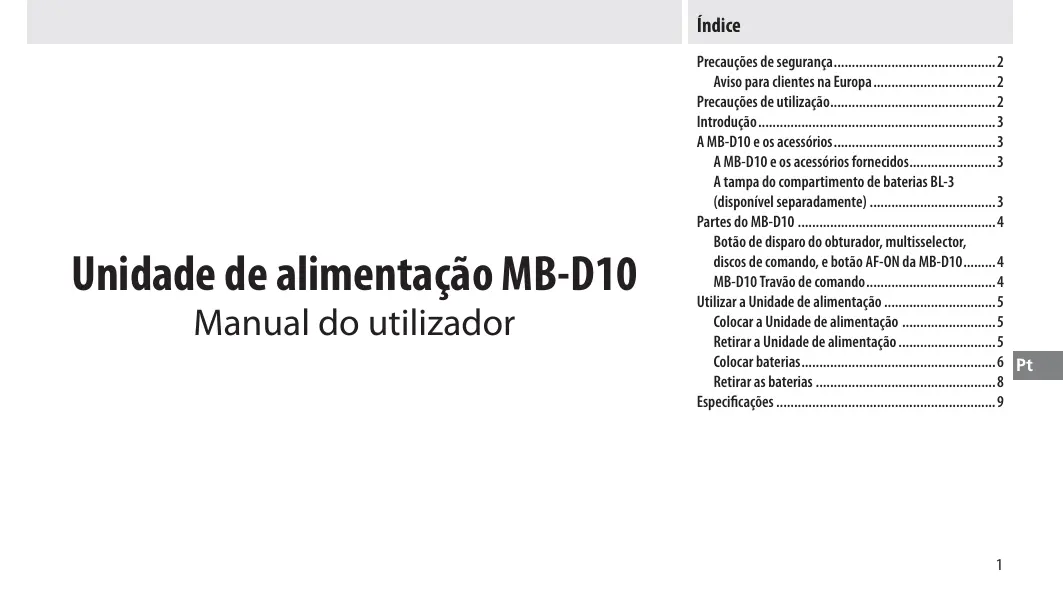MANUAL DE UTILIZADOR MB-D10 MULTI-POWER BATTERY PACK NIKON
