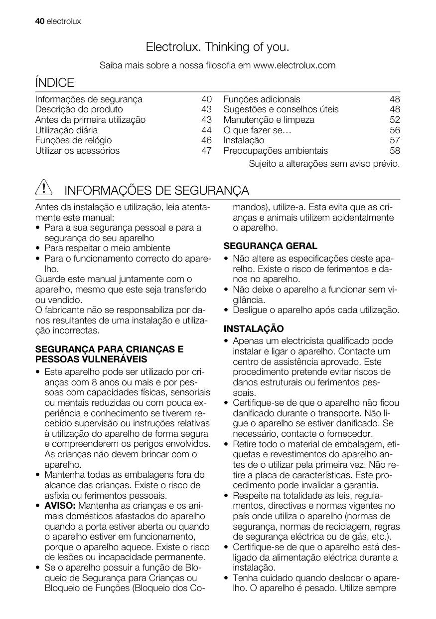- Utilize apenas peças sobressalentes originais. electrolux 43