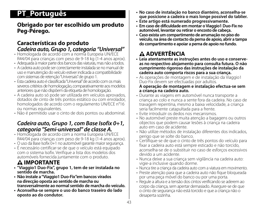 VIAGGIO1 DUO-FIX - Cadeira de carro PEG PEREGO - Manual de utilização gratuito