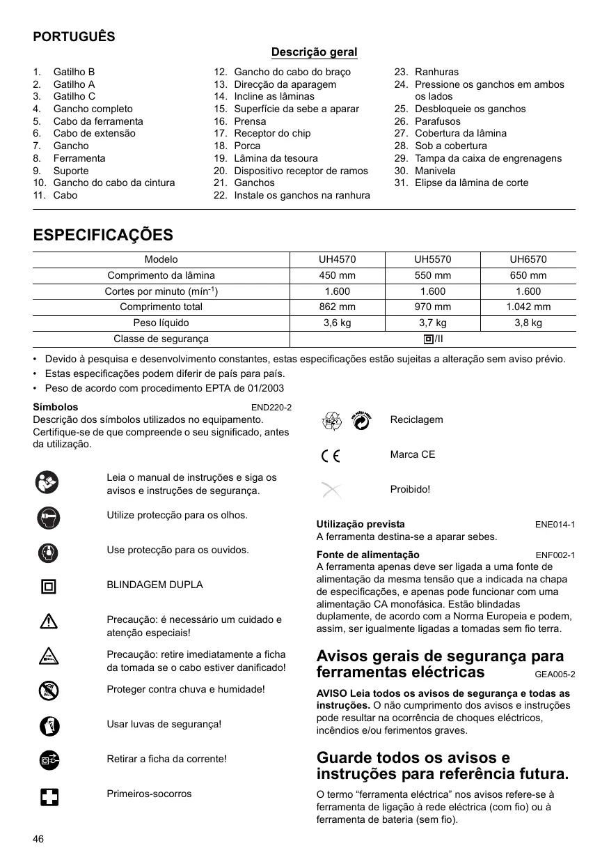 Baixe as instruções para o seu Roçadora em formato PDF gratuitamente! Encontre o seu manual UH6570 - DOLMAR e retome o controlo do seu dispositivo eletrónico. Nesta página estão publicados todos os documentos necessários para a utilização do seu dispositivo. UH6570 da marca DOLMAR.
