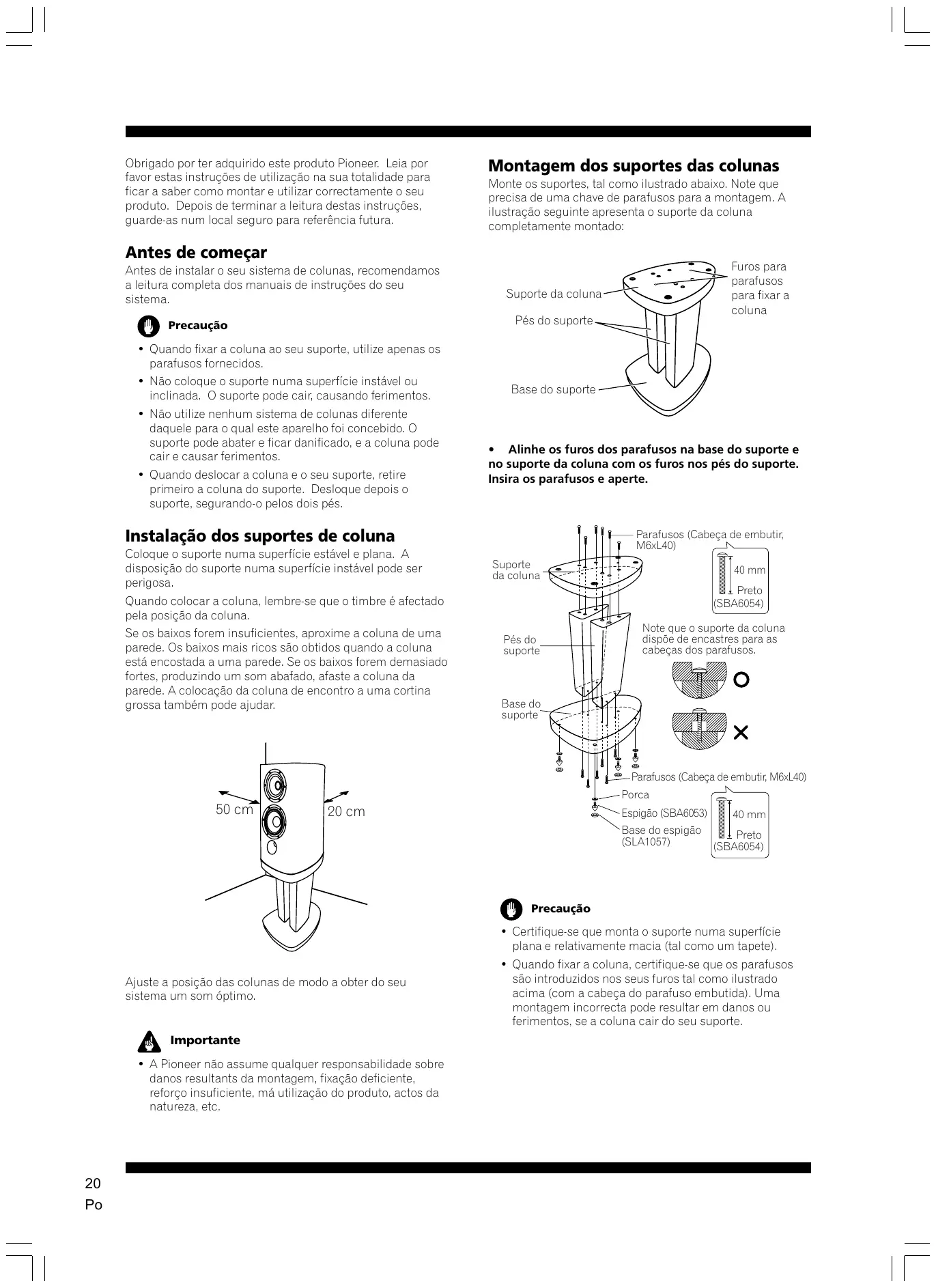 Obrigado por ter adquirido este produto Pioneer. Leia por favor estas instruçôes de utilizaçäo na sua totalidade para ficar a saber como montar e utilizar correctamente o seu produto. Depois de terminar a leitura destas instruçôes, guarde-as num local seguro para referência futura