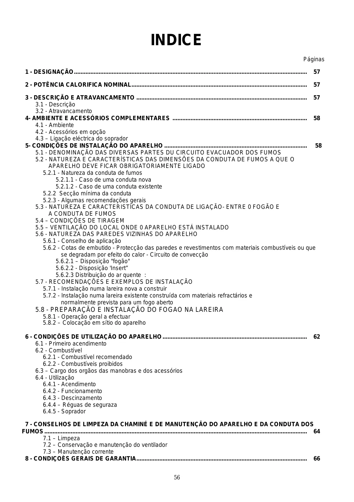 5- CONDIÇÕES DE INSTALAÇÃO DO APARELHO ....................................................................................... 58