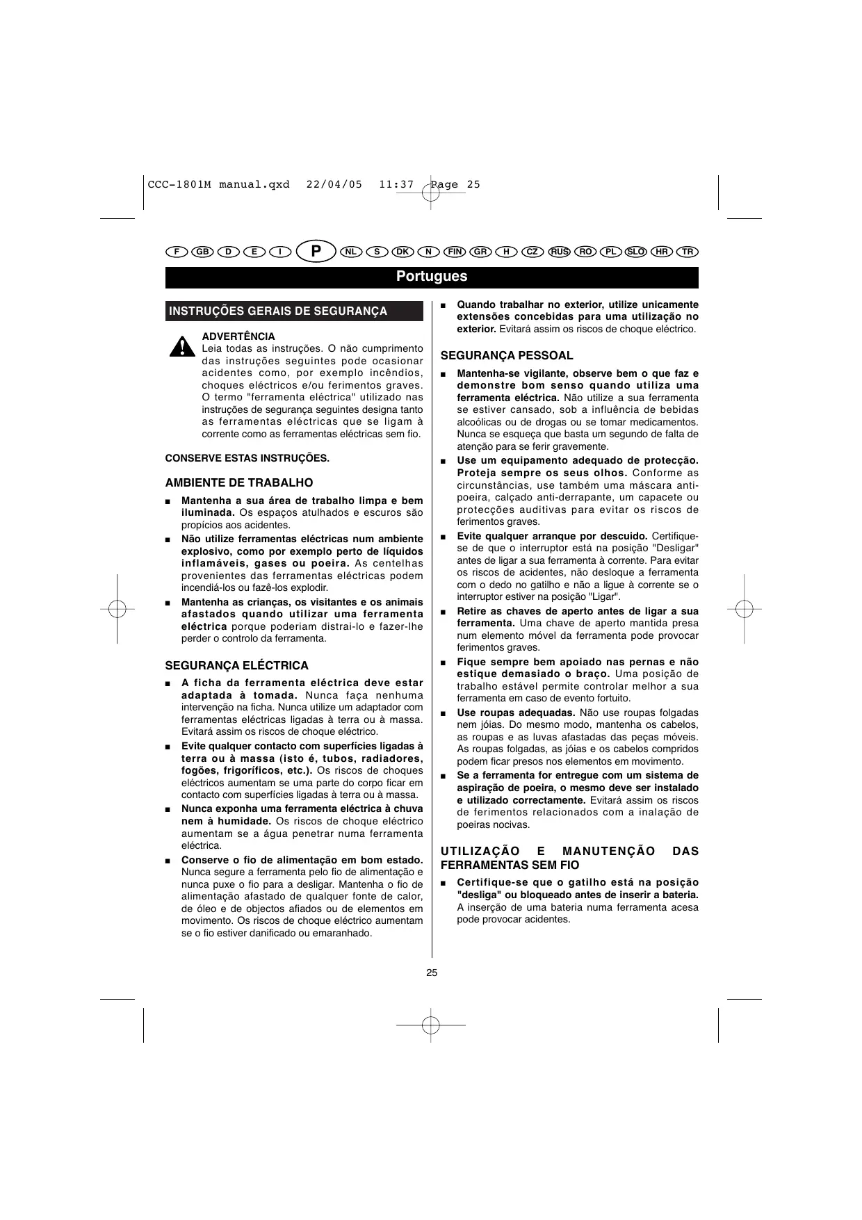 CCC1801M - RYOBI - Manual de utilização gratuito