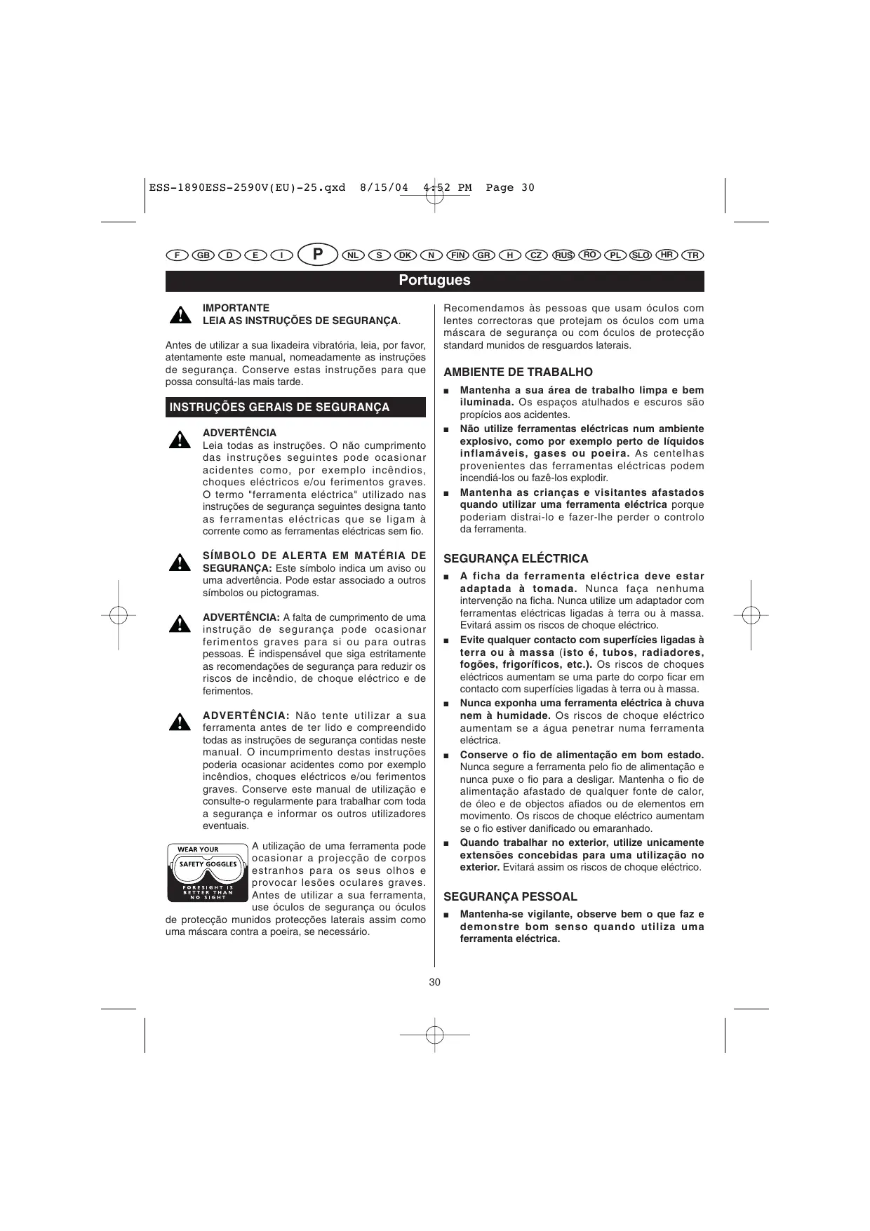 Mantenha-se vigilante, observe bem o que faz e demonstre bom senso quando utiliza uma ferramenta eléctrica. ESS-1890ESS-2590V(EU)-25.qxd