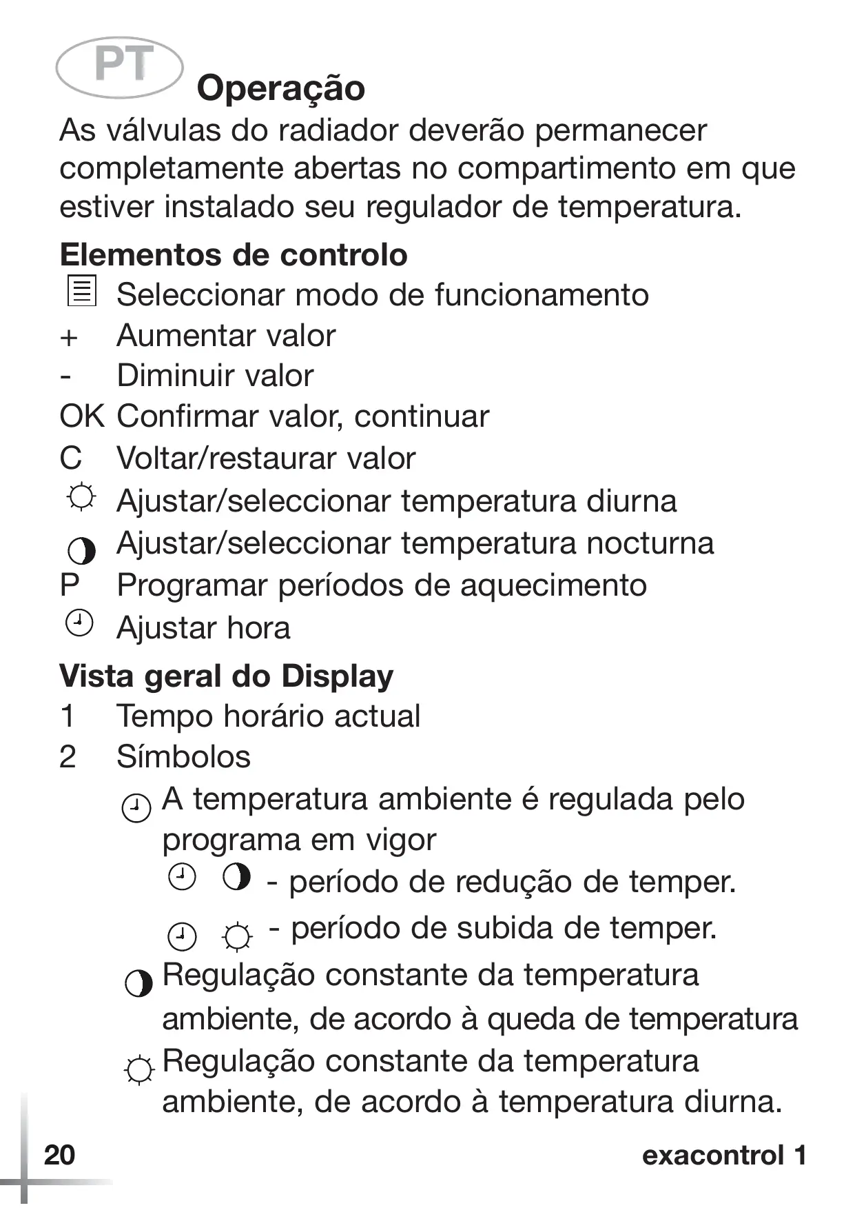 Seleccionar modo de funcionamiento + Aumentar valor - Disminuir valor OK Confirmar valor, pasar página Regulación constante de la temperatura ambiente, según la temperatura diurna. 16