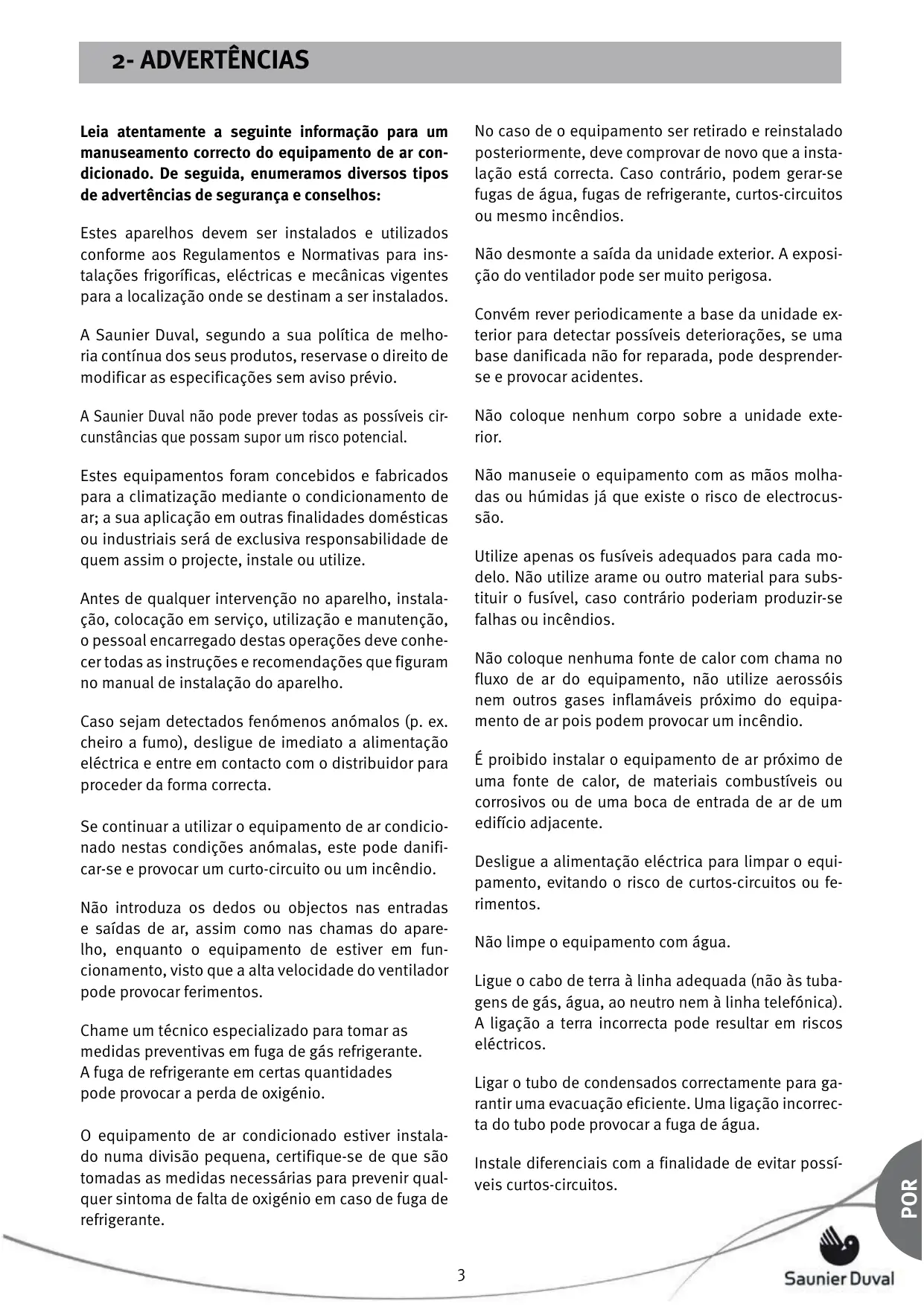 Duval qui, en fonction des besoins, offre des conditions de contrat personnalisées. L’installation frigorifique doit être réalisée avec les tuyaux spécifiques à la climatisation (ATTENTION ! Ne jamais utiliser de tuyaux de plomberie). Cet appareil contient du fluide frigorifère R-410A. Ne pas l’évacuer dans l’atmosphère : le R-410A est un