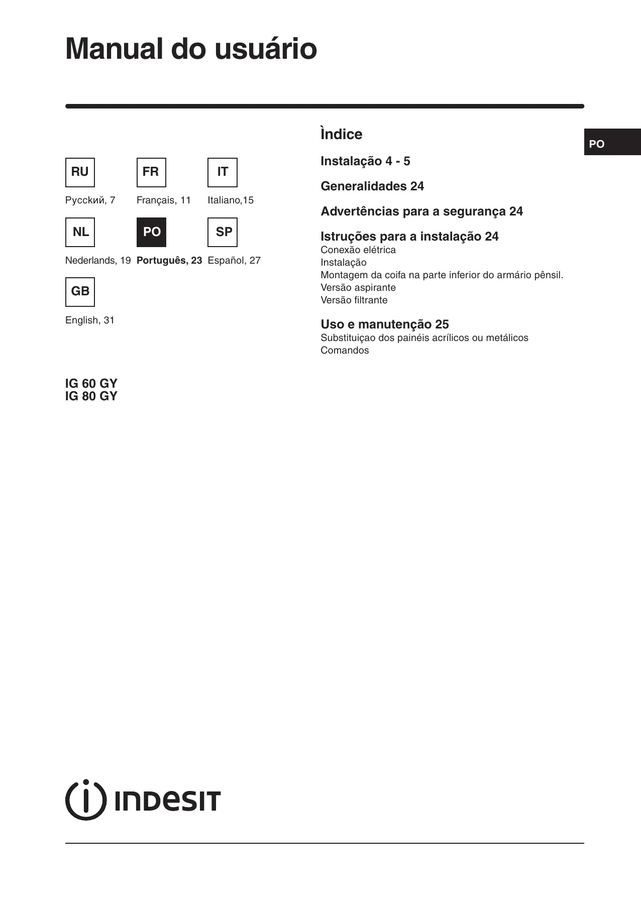 Encontre gratuitamente o manual do aparelho IG 80 GY INDESIT em formato PDF.