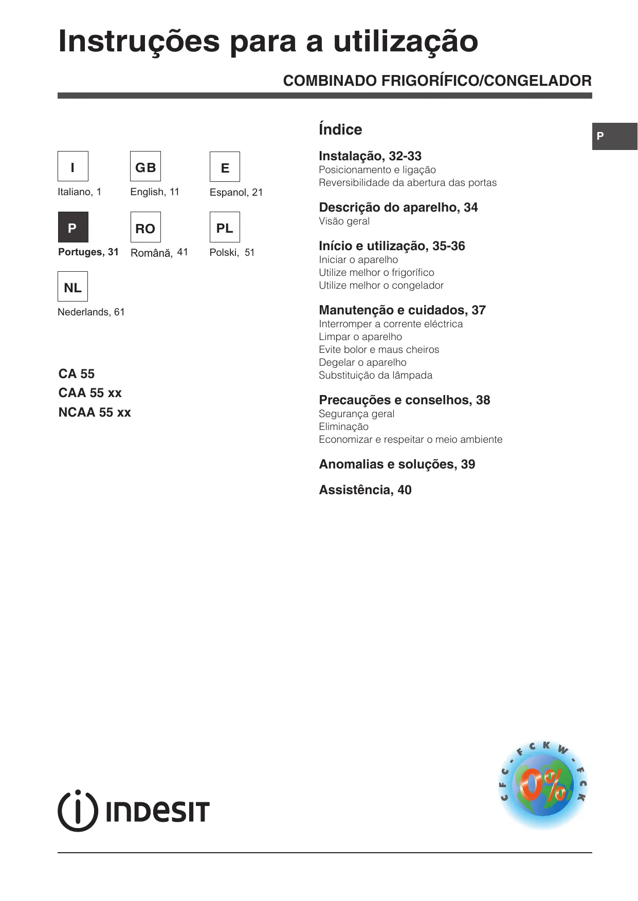 NCAA 55, NCAA 55 K - Frigorífico combinado INDESIT - Manual de utilização gratuito