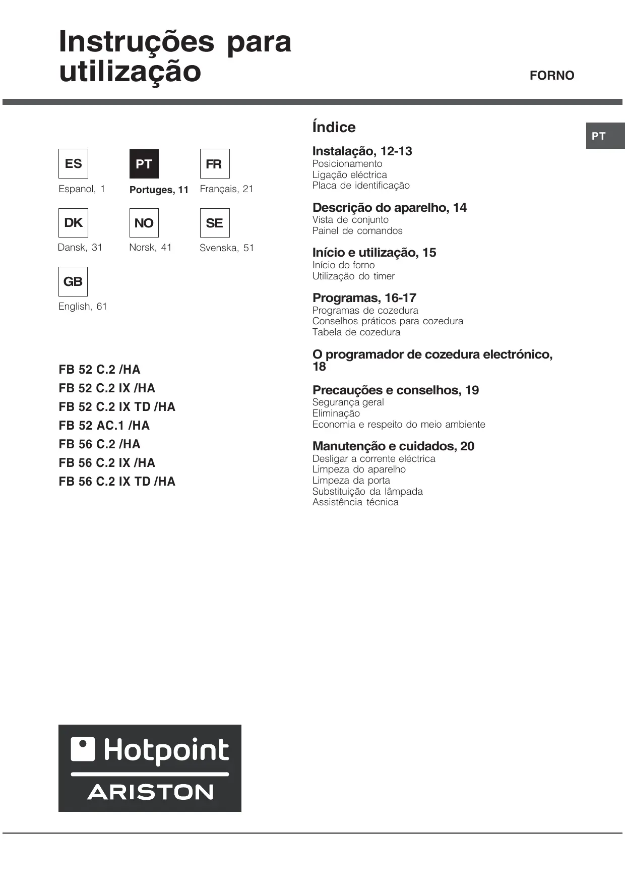 FB 52 AC.1 - Forno HOTPOINT - Manual de utilização gratuito