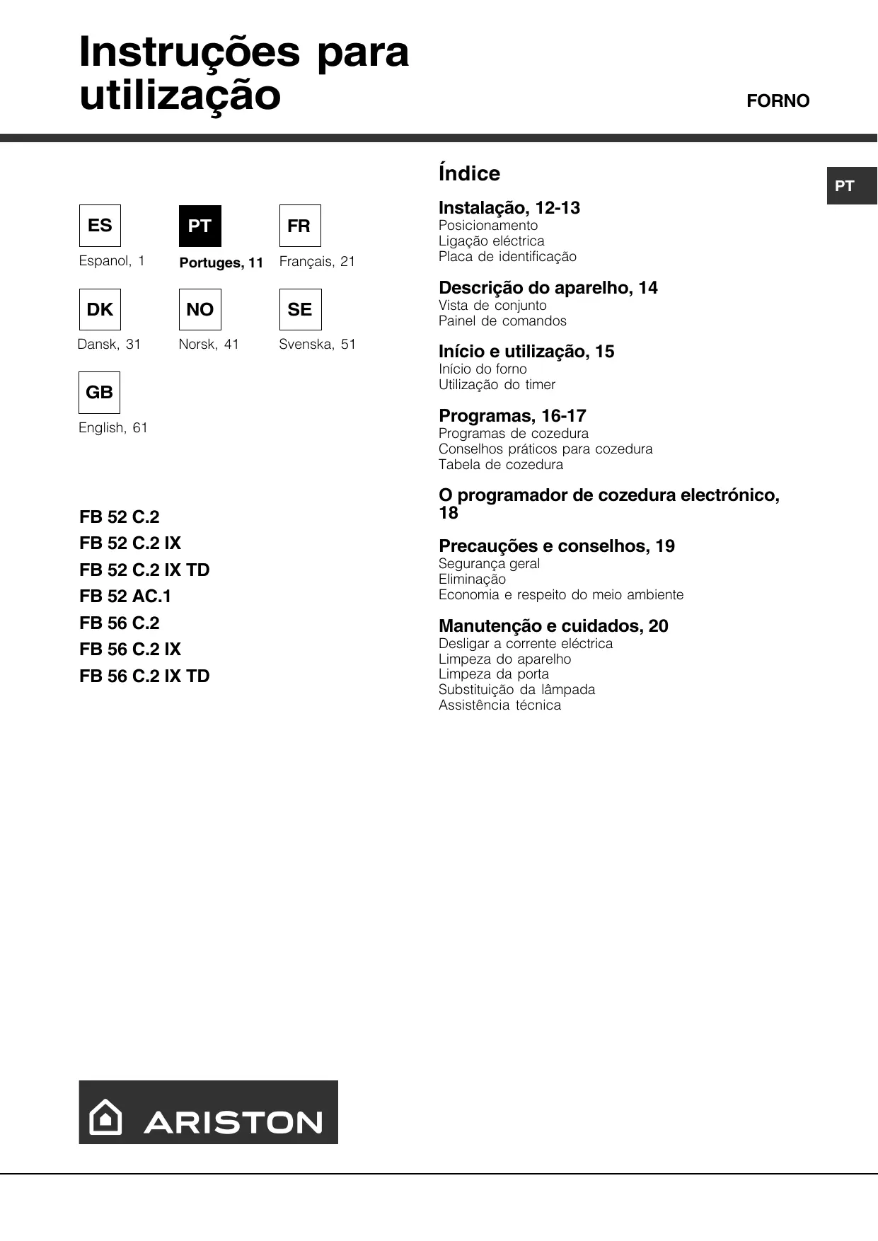 MANUAL DE UTILIZADOR FB 56 C.2 IX TD HOTPOINT