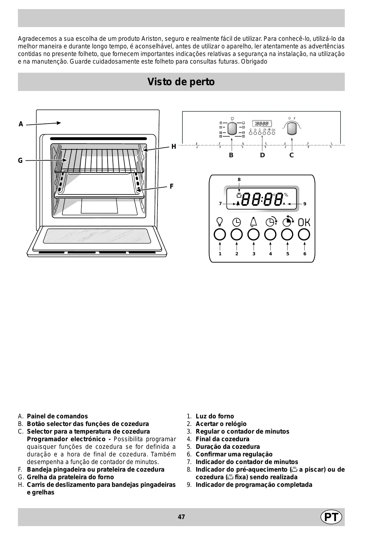 Agradecemos a sua escolha de um produto Ariston, seguro e realmente fácil de utilizar. Para conhecê-lo, utilizá-lo da melhor maneira e durante longo tempo, é aconselhável, antes de utilizar o aparelho, ler atentamente as advertências contidas no presente folheto, que fornecem importantes indicações relativas a segurança na instalação, na utilização e na manutenção. Guarde cuidadosamente este folheto para consultas futuras. Obrigado Visto de perto