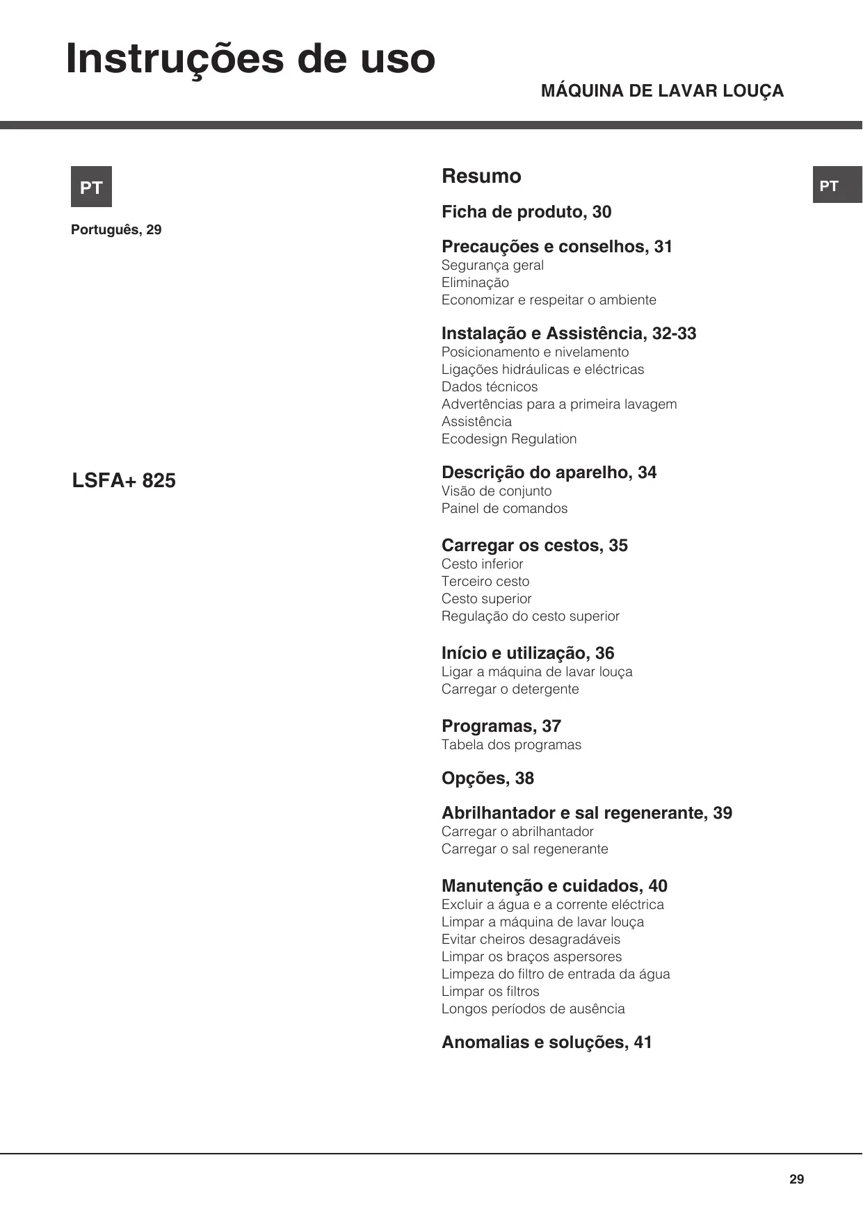Encontre gratuitamente o manual do aparelho LSFA 825 HA HOTPOINT em formato PDF.