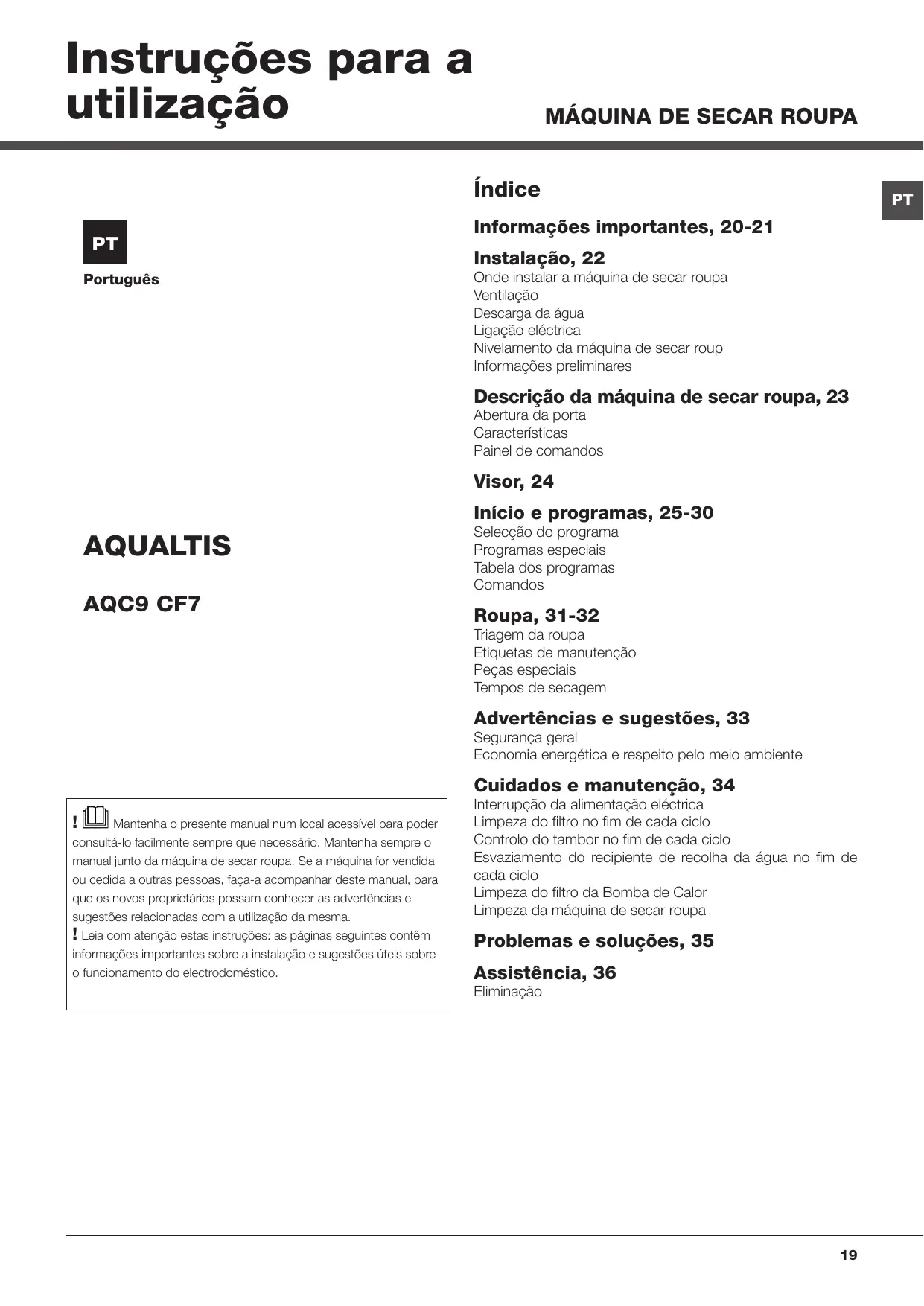 AQC9CF7 T1 - Secadora de roupa HOTPOINT - Manual de utilização gratuito