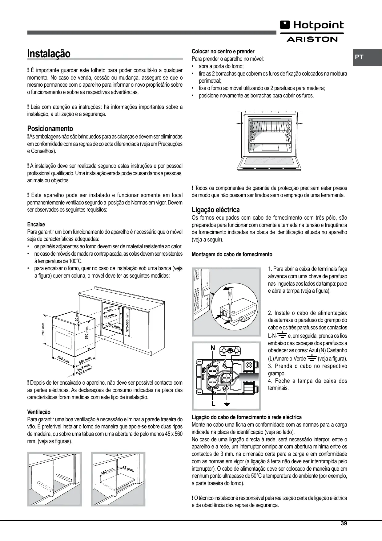 Instalação ! É importante guardar este folheto para poder consultá-lo a qualquer momento. No caso de venda, cessão ou mudança, assegure-se que o mesmo permanece com o aparelho para informar o novo proprietário sobre o funcionamento e sobre as respectivas advertências.