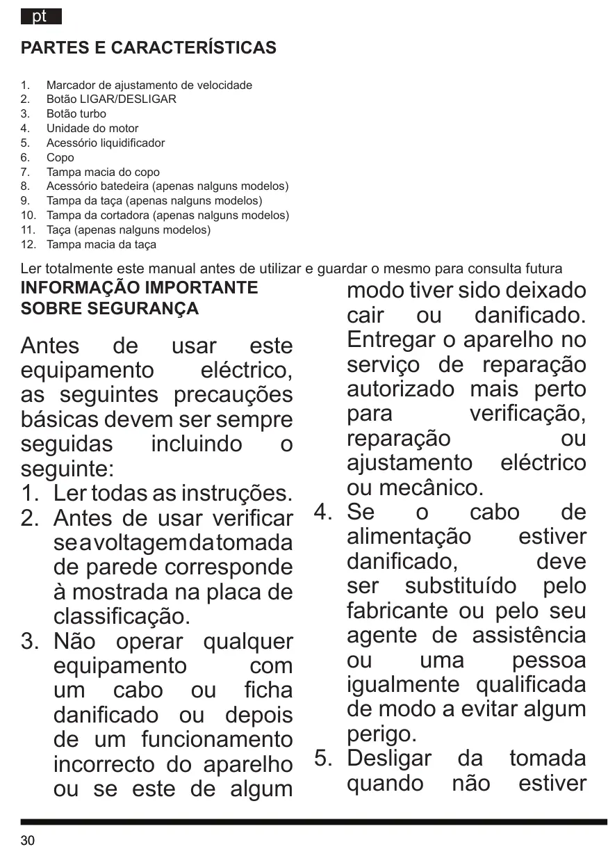 - Não operar qualquer equipamento com um cabo ou ficha danIFICado ou antes de um functiimento incorrecto do aparelho ou se esté de algoum