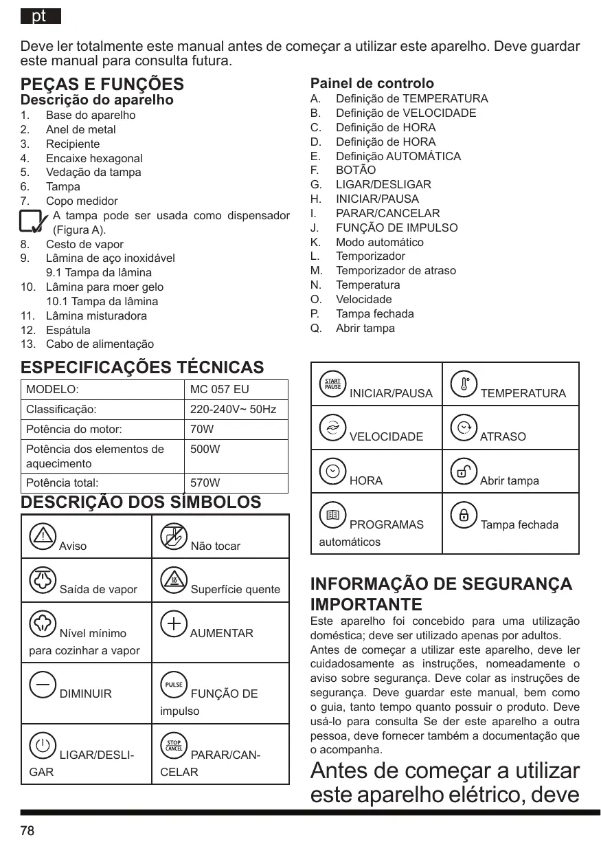 Encontre gratuitamente o manual do aparelho MC 057C AX0 HOTPOINT em formato PDF.