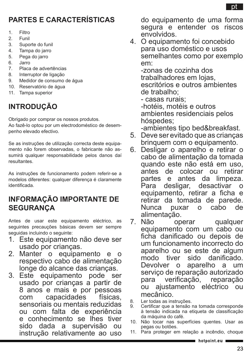 CM TDC DXB0 - Cafeteira elétrica HOTPOINT - Manual de utilização gratuito